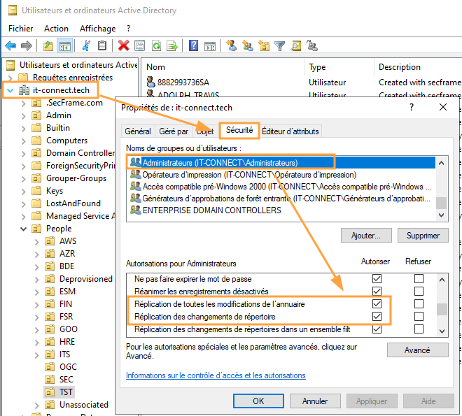 C’est donc grâce à ces permissions que le contrôleur de domaine va autoriser la demande de synchronisation.