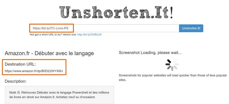 Vous pouvez tester le lien https://bit.ly/ITC-Livre-PS, créé par nos soins, et qui renvoie vers une page Amazon.fr.