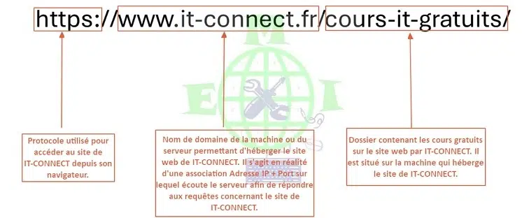 - L’identifiant de la machine ou serveur stockant la ressource : généralement représentée ici une adresse IP ou un nom de domaine.