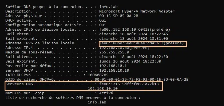 Note : Grace au protocole WinRM, il est possible d'exécuter des commandes sur des serveurs distants, notamment PowerShell. Étant donné que la commande de désactivation du protocole IPv6 sur la carte n’impacte pas la disponibilité de l’hôte, vous pouvez le faire à tout moment.