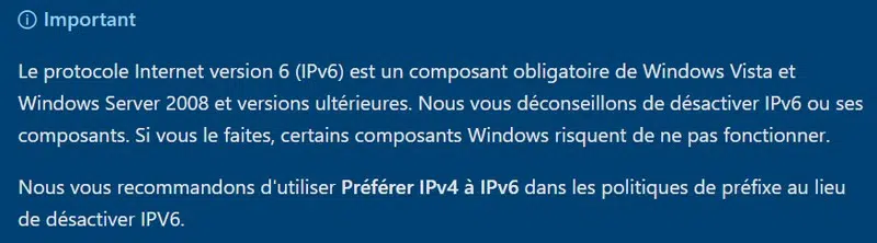 Merci Emile pour votre intervention, il s’agissait surement d’une confusion que j’ai peut être pas souligné en gros dans l’article, nous nous sommes adressé aux entreprises qui n’utilisent pas ipv6 dans leur réseau interne en leur favorisant de décocher la fonction, certains ont cru qu’on demande aux opérateurs ou service WAN de désactiver IPv6 ce qui n’est pas le cas.