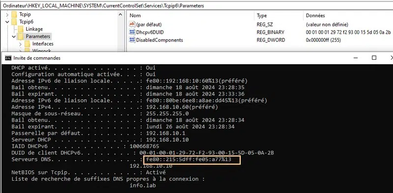 - Chemin : HKEY_LOCAL_MACHINE\SYSTEM\CurrentControlSet\Services\Tcpip6\Parameters\