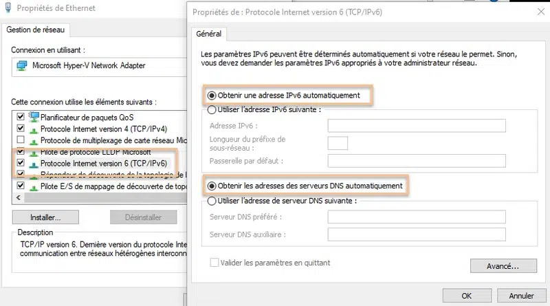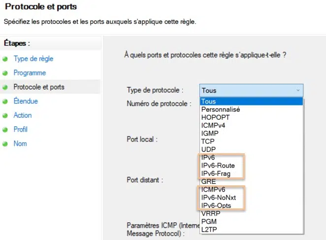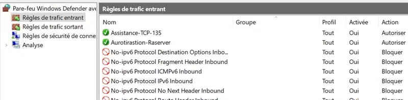 Il faudra alors renforcer la sécurité avec des règles Pare-feu Windows dans le but d’ignorer les paquets IPv6.