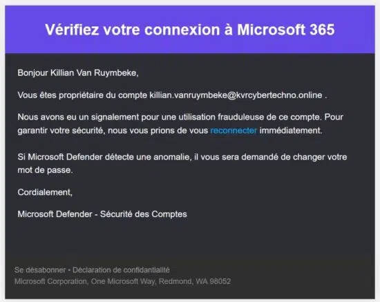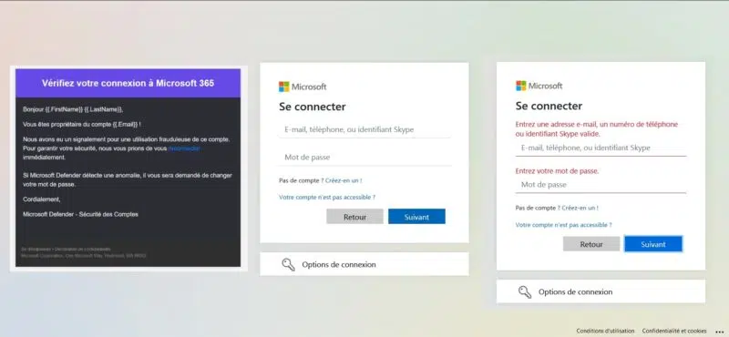 En configurant une page de destination qui capture les informations d'identification des utilisateurs et les redirige vers le site légitime de Microsoft, vous pouvez mesurer l'efficacité de votre campagne de phishing tout en minimisant les suspicions des utilisateurs.