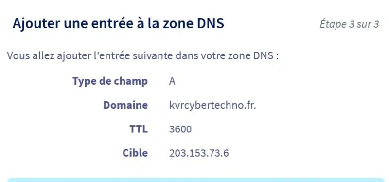- Un domaine configuré chez votre fournisseur DNS (ce tutoriel utilise kvrcybertechno.fr)