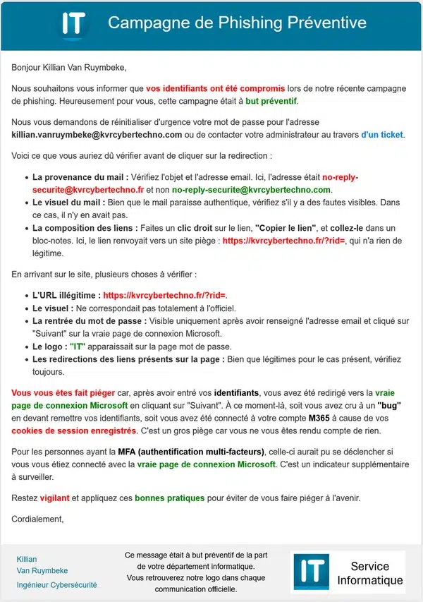 Maintenant que votre campagne a porté ses fruits, je vous conseille de sensibiliser les utilisateurs impactés avec une campagne de remédiation.