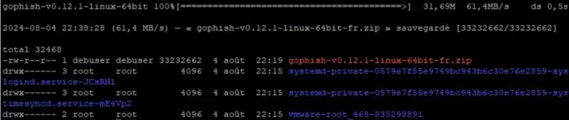 sudo unzip gophish-v0.12.1-linux-64bit-fr.zip -d /tmp/gophish_unpack