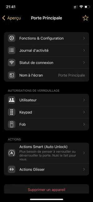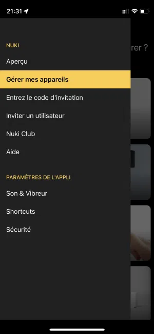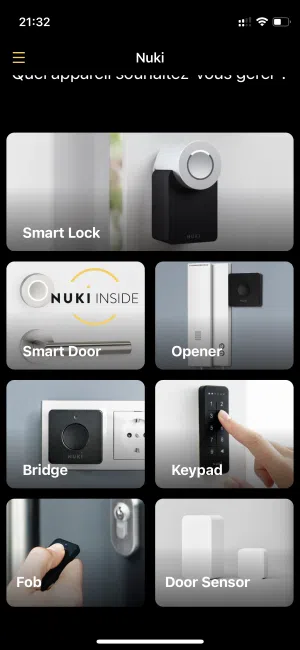 Pour l’installation logicielle, il vous suffit de vous rendre dans l’application Nuki sur votre smartphone, puis aller dans le menu et sélectionner « Gérer vos appareils ». Sélectionnez Keypad.