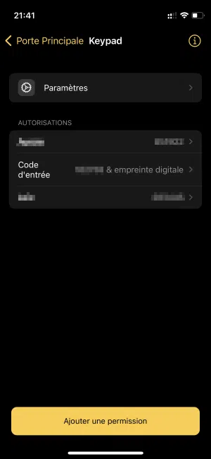Pour ajouter une empreinte, allez dans les paramètres de votre serrure puis sélectionnez Keypad, et sélectionnez l’utilisateur souhaité.