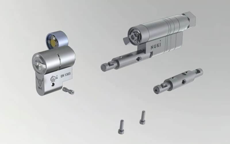 Par ailleurs, le Nuki Universal Cylinder est un cylindre universel qui pourrait bien permettre à Nuki de conquérir de nouveaux clients. En effet, certains cylindres ne sont pas compatibles avec les serrures connectées, notamment celles de Nuki, car il n'est pas possible d'effectuer un déverrouillage de l'extérieur si une clé est restée sur la porte à l'intérieur. Cette fonction d'urgence est recommandée, mais pas présente sur toutes les portes. Développé avec la société M&C, le cylindre de Nuki respecte les normes de sécurité les plus strictes , s'adapte en longueur pour être ajusté à votre porte et bien sûr, il permet l'installation de la serrure Nuki. Le cylindre universel de Nuki sera livré avec 5 clés et proposé au prix de 79 euros. Cela rajoute un surcout en plus de la serrure connectée, mais il permettra à certaines personnes d'outrepasser la problématique liée à un cylindre incompatible.