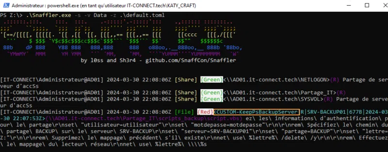 .\Snaffler.exe -s -v Data -n AD01.it-connect.tech,DESKTOP-VAU6BQO.it-connect.tech