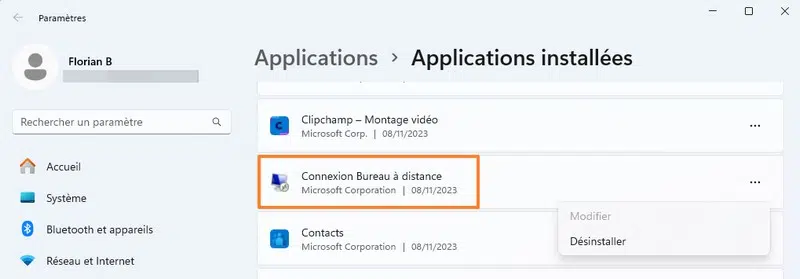 Sur son site, Microsoft précise : "Pour désinstaller et réinstaller Remote Desktop Connection, vous devez utiliser Windows 11 23H2 ou une version ultérieure.". Toutefois, sur un PC encore sous Windows 11 22H2, j'ai également la possibilité de désinstaller cette application.