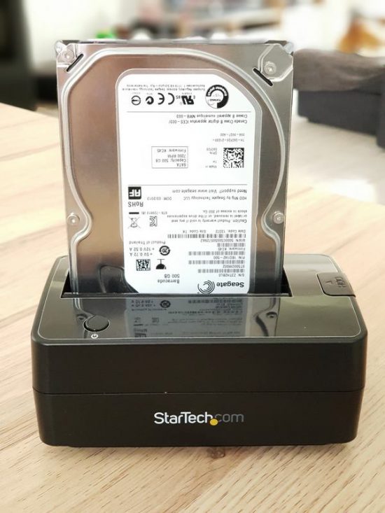 Sur la documentation technique, c'est indiqué que le boitier a été testé avec un disque dur de capacité 6 To maximum. Malheureusement, je n'ai pas de disque dur 8 ou 10 To pour vérifier s'il peut supporter aussi ces modèles avec une grande capacité. J'utilise un disque dur mécanique de 500 Go pour tester, plus précisément un Seagate Barracuda en 7200 rpm.