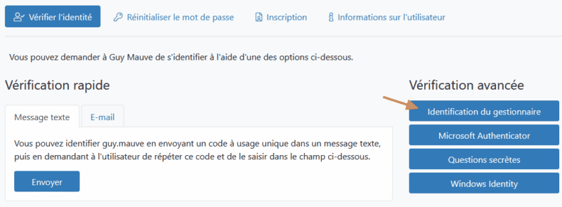 Dans certains cas, il peut être nécessaire de s'appuyer sur une autre personne pour vérifier l'identité de quelqu'un. Imaginons que l'utilisateur n'ait pas accès à ses e-mails et qu'il n'a pas son téléphone, comment faire ? On peut prendre un autre exemple : le responsable de service souhaite donner son accord avant la réinitialisation d'une action spécifique, on le sollicite, en plus de vérifier l'identité de l'utilisateur en lui-même.