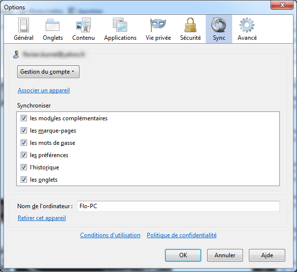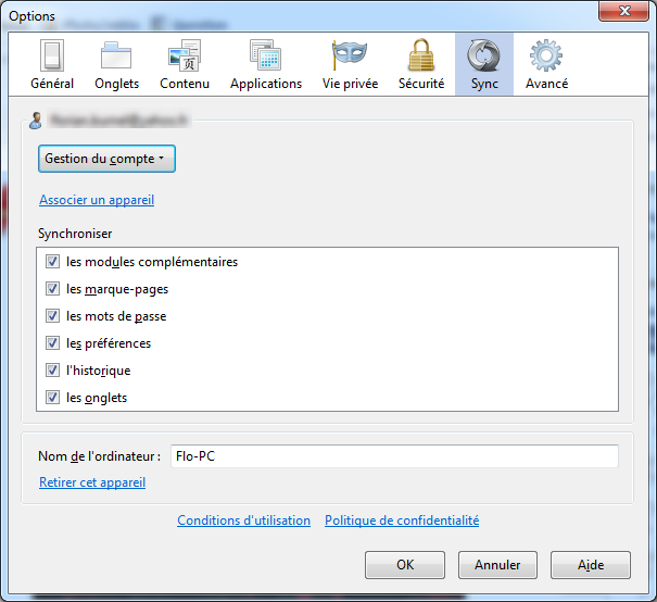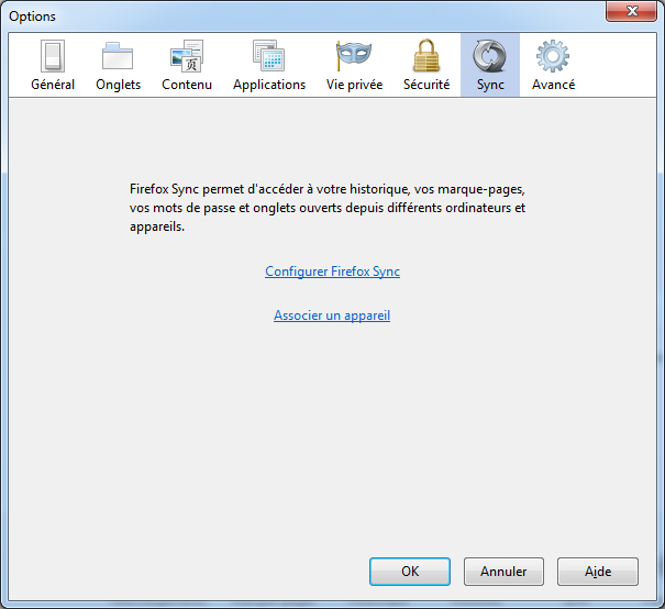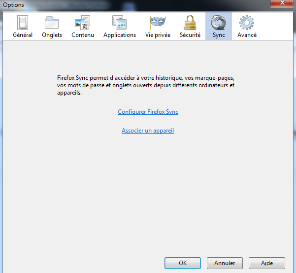 - Accédez aux options de Firefox puis allez dans l'onglet "Sync" :