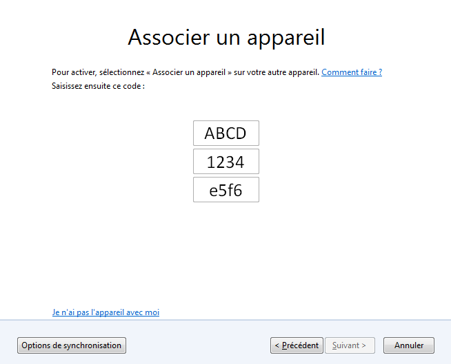 - Sur l'ordinateur où la fonction de synchronisation est déjà en place, retournez dans les options puis dans l'onglet Sync et cliquez sur "Associer un appareil" :
