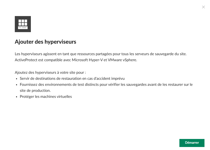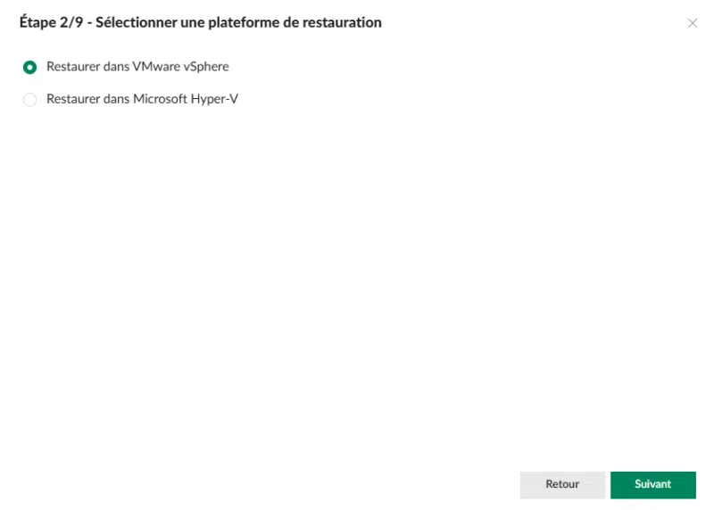 ActiveProtect peut s'avérer utile dans un scénario V2V (Virtual to Virtuel) puisque vous pouvez sauvegarder une VM Hyper-V et la restaurer sur un hyperviseur VMware ESXi.