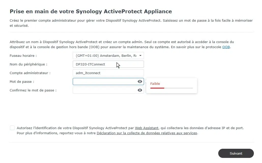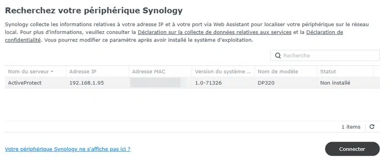 Rendez-vous à l'adresse "https://finds.synology.com/" pour lancer la détection de l'appliance sur le réseau, une fois qu'elle sera connectée et allumée. Un assistant bien ficelé est ensuite là pour nous guider. Comptez environ 20 minutes le temps de l'installation et la configuration du système.