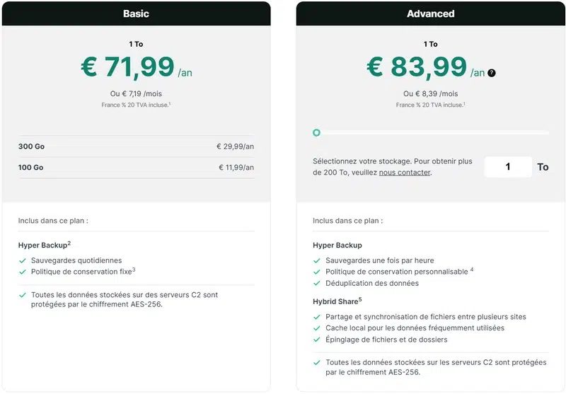Personnellement, j’ai choisi Leviia qui me permet de bénéficier d’un cloud souverain sécurisé compatible avec Hyper Backup avec du stockage immuable plus performant (Tx, Rx et I/O) tout cela pour moins cher que du Synology C2.