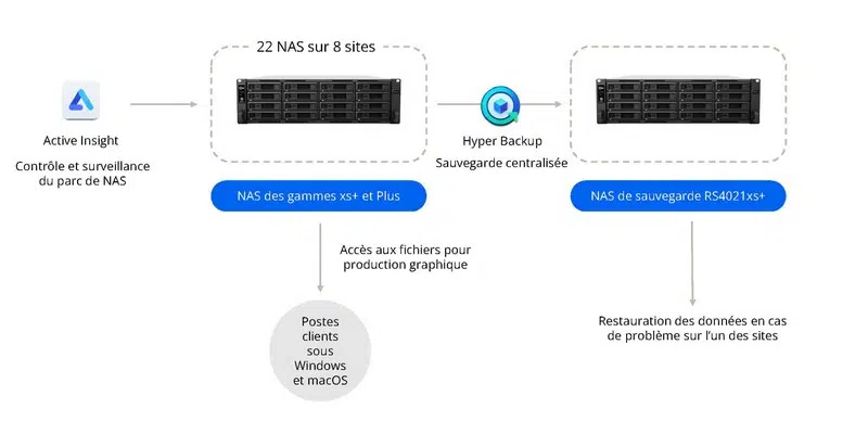 Cette capacité se divise entre stockage de production et espace dédié aux sauvegardes, puisque RC Group a également fait le choix de déployer plusieurs solutions de sauvegarde de Synology, dont Hyper Backup.