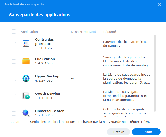 Note : Hyper Backup est une application destinée à sauvegarder les données du NAS ou sa configuration vers une destination externe. Elle ne doit pas être configurée avec les applications de la suite Active Backup destinées à des scénarios différents : la sauvegarde de données de sources externes sur le NAS en lui-même. Autrement dit, Hyper Backup et Active Backup répondent à des besoins différents et peuvent être utilisés conjointement.