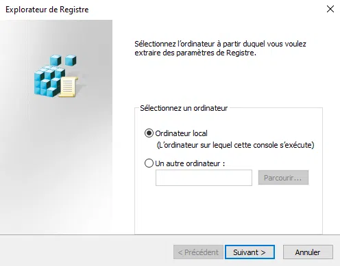Un assistant s'exécute. Si votre machine de référence correspond à la machine locale, choisissez "Ordinateur local", sinon prenez la seconde option et recherchez votre machine.