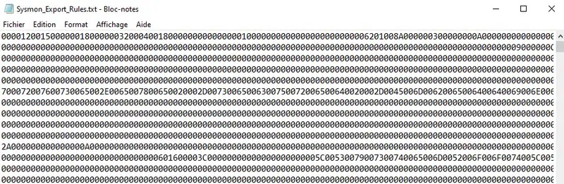 La réponse se trouve dans cette phrase de l'article : "Lorsqu'une nouvelle configuration est chargée, le driver de Sysmon récupère les données du fichier XML afin de les stocker dans le Registre Windows, après avoir converti les données." - Nous allons directement injecter la configuration dans le Registre ! Ceci va nécessiter quelques manipulations, mais l'avantage, c'est que la configuration sera difficilement accessible, lisible et interprétable par un attaquant.