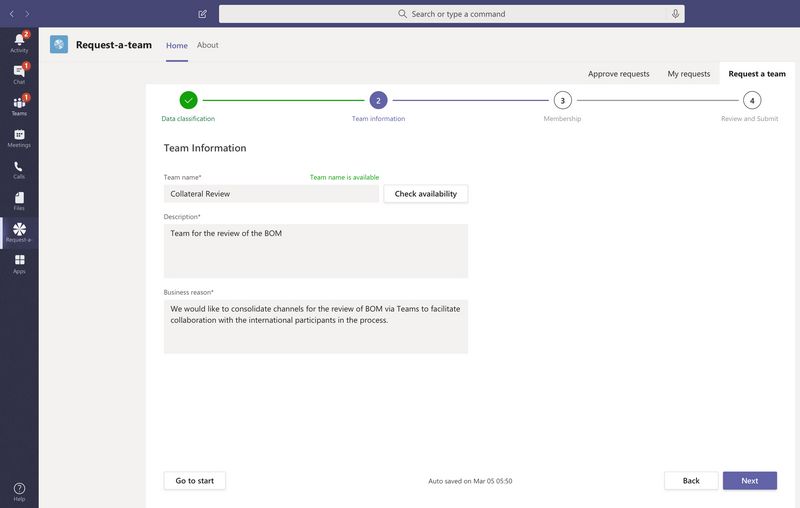 Afin de garder le contrôle sur Teams en entreprise, il y a un réel besoin pour standardiser, à l'aide d'un processus, la création des équipes. L'application Request-a-team apporte des éléments de réponse intéressants.
