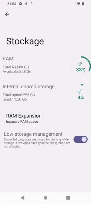 - Stockage : 256 Go (extensible jusqu'à 512 Go via carte microSD)