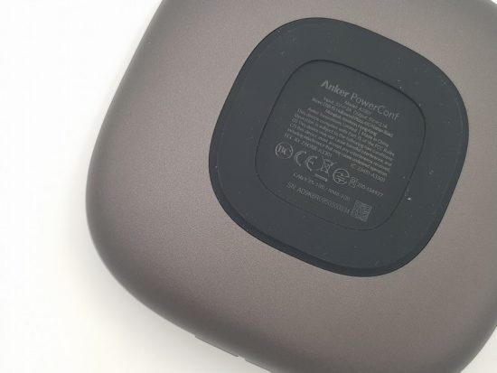 Concernant la base audio PowerConf, elle est assez compacte car elle tient dans la main, et une fois posée sur le bureau ou la table de réunion, elle est stabilisée grâce au-dessous qui bénéficie d'une surface antidérapante.