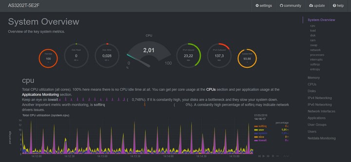 Récemment, l'application Netdata est apparue sur l'AppCentral qui est le magasin d'applications Asustor, elle permet d'obtenir un nombre d'infos impressionnantes liées à l'activité de votre NAS, de façon très poussée. C'est vraiment très intéressant comme solution de monitoring pour votre NAS !
