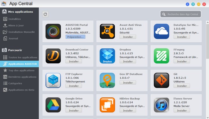 D'ailleurs, on notera l'effort d'Asustor de proposer directement dans l'AppCentral deux applications qui viendront se greffer à l'Asustor Portal :