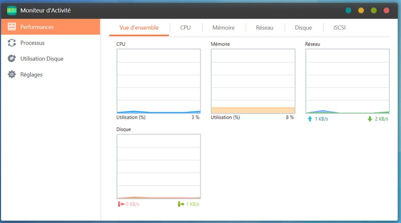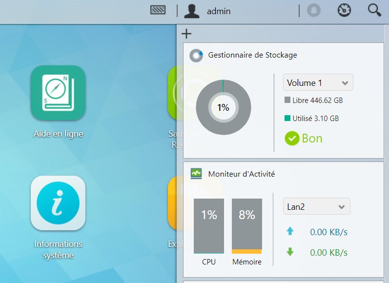 - L'outil de monitoring de l'activité du NAS est nettement amélioré que ce soit au niveau du design que de la pertinence des informations. De son côté le gestionnaire de stockage affiche désormais les infos liées au périphérique USB connecté.