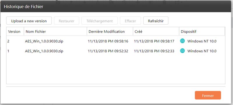 Dans l'explorateur de fichiers EZ Sync, le nombre de versions pour un fichier s'affiche sur la droite. Ensuite, en cliquant sur le bouton lié au versioning, on peut en savoir plus et décider de restaurer le fichier à une version antérieure. Plutôt intéressant.