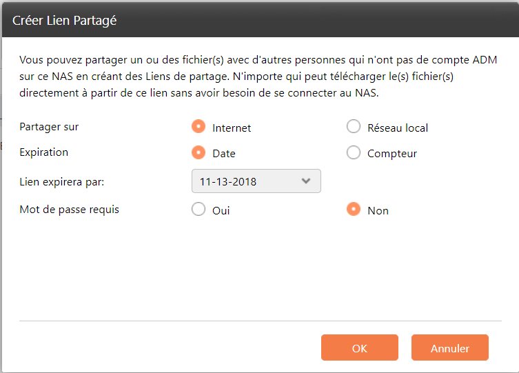 Une autre fonctionnalité d'EZ Sync qui est intéressante, c'est le partage de fichiers. Vous pouvez effectuer un partage accessible depuis Internet ou limité au réseau local, ce qui est une option pertinente à mon sens. En terme de sécurité, il est possible de configurer l'expiration du lien de partage mais aussi d'ajouter une protection par mot de passe.