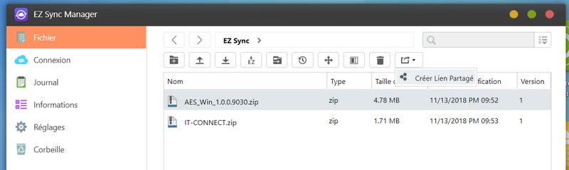 En parallèle, EZ Sync est une fonctionnalité de synchronisation de données entre votre NAS et votre ordinateur, comme on peut le faire avec d'autres outils Cloud comme OneDrive, Google Drive ou encore Nextcloud si l'on cite un produit libre. A cela s'ajoute la possibilité de créer des liens de partage pour vos données et la gestion du versionning au niveau de vos fichiers.