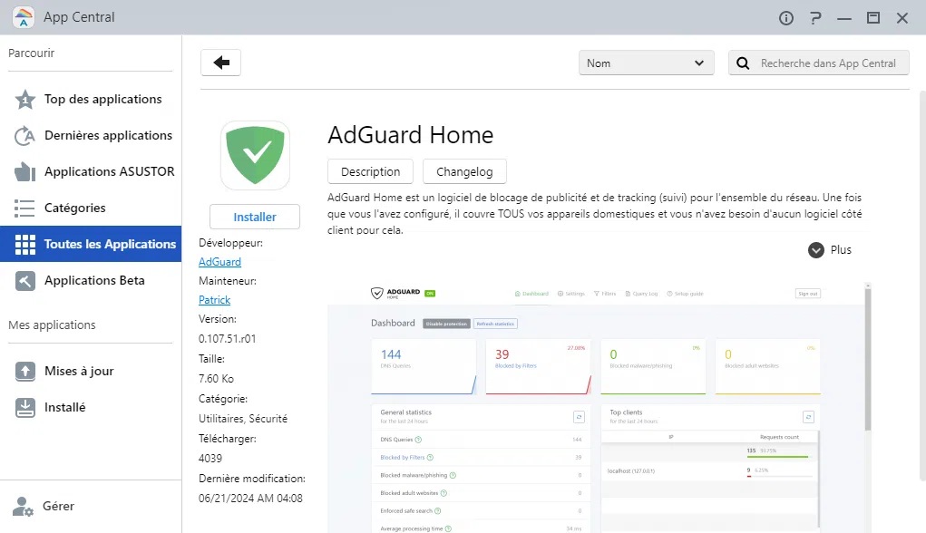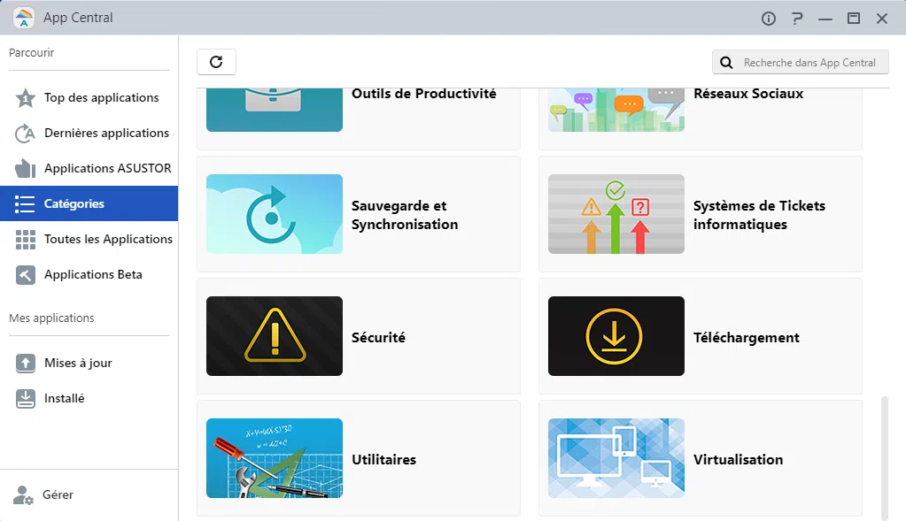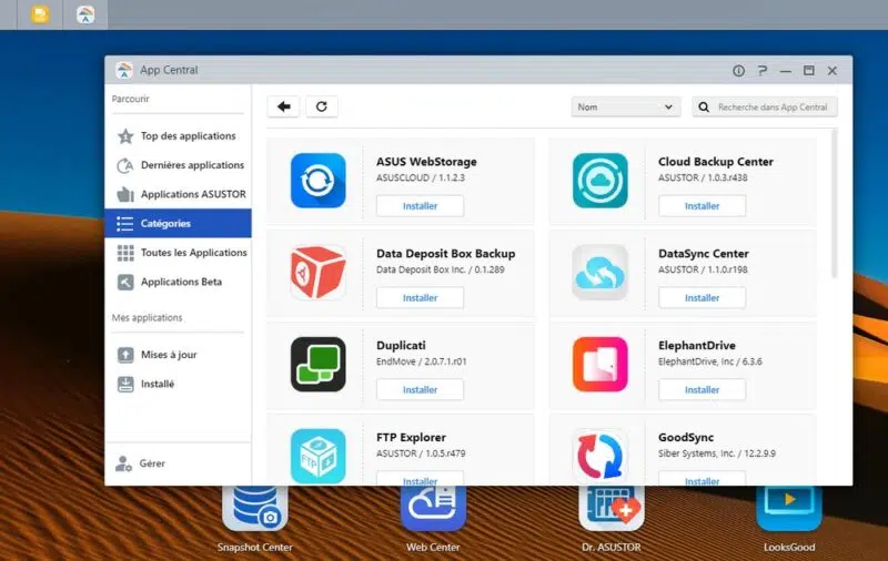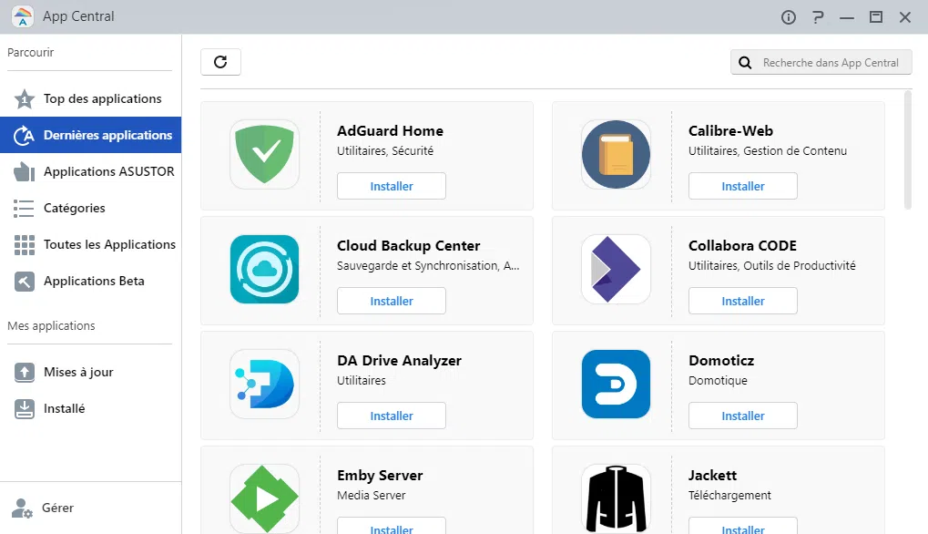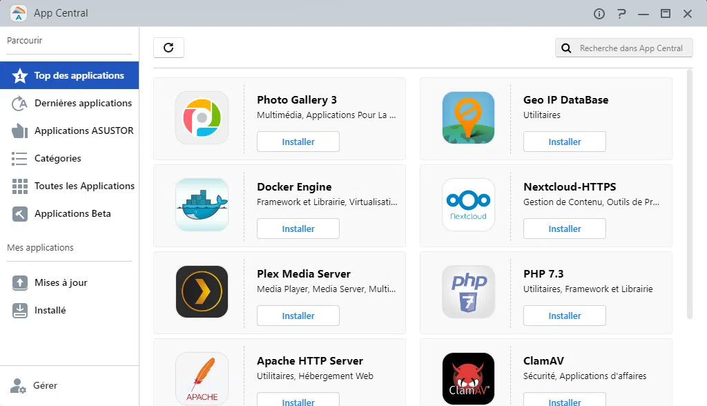 Voici quelques applications disponibles dans l’App Central d’ASUSTOR :