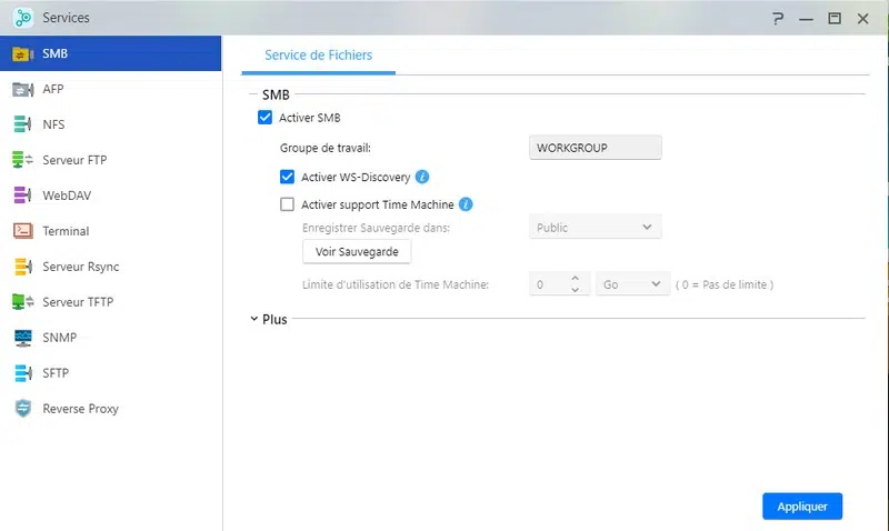 - Prise en charge de nombreux protocoles : NFS, FTP, WebDAV, SMB, SFP, AFP (MacOS), SNMP, TFTP, SFTP, etc.