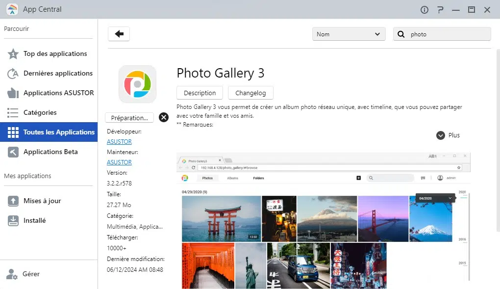 Photo Gallery 3 permet à l'utilisateur de stocker et d'organiser ses photos, et éventuellement ses vidéos. Autrement dit, c'est une solution pour organiser vos photos souvenirs sur votre NAS. Ces photos pourront être organisées par album, par emplacement, et visualisées depuis le navigateur. C'est intéressant pour sauvegarder les photos de son smartphone sur le NAS.