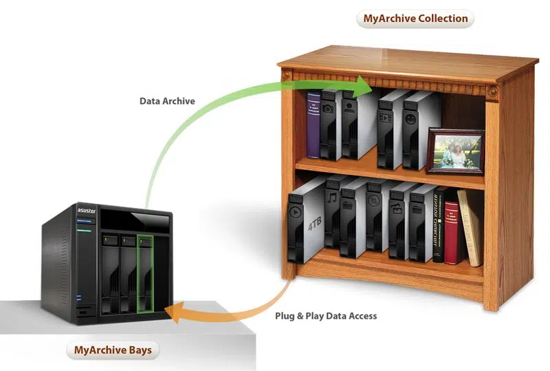 Pour la partie stockage, ce sont trois disques durs Seagate IronWolf 1 To (5 900 tr/min - 64 Mo de mémoire cache) montés en RAID-5 qui seront utilisés. Le système de fichiers Btrfs est utilisé. Puisque ce NAS dispose de 4 baies de disques et qu'il n'y en a que 3 utilisées, que faire de la baie de disque inutilisée ? Sachez qu'elle n'est pas perdue puisque nous pourrions l'utiliser pour effectuer de l'archivage de données sur disque via la fonction MyArchive développée par ASUSTOR.