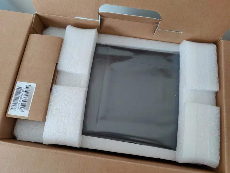 Dans la boite, il y a un petit carton avec l'ensemble des accessoires, ainsi que le NAS bien calé dans des blocs de mousse et emballé dans un plastique. La façade brillante est également protégée par un film protecteur supplémentaire (utile pour lutter contre les micro-rayures). Tout est fait pour que le matériel ne soit pas endommagé pendant le transport.