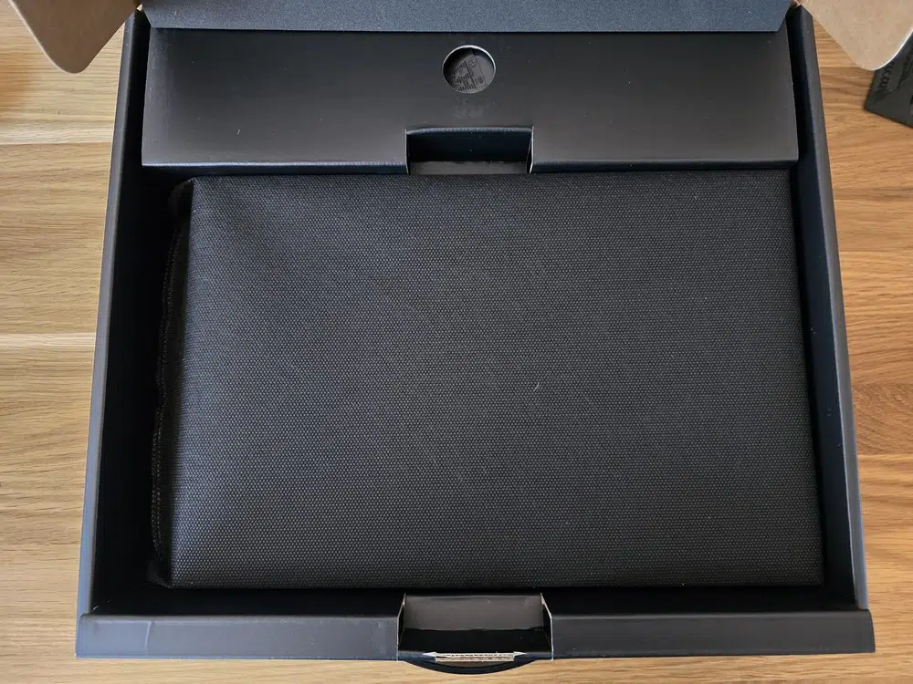 À l'intérieur, un compartiment dédié regroupe tous les accessoires, tandis que le NAS est soigneusement protégé dans ce qui ressemble à une housse. Son emballage entièrement noir s’harmonise parfaitement avec l'esthétique du produit. Le déballage fait excellente impression et montre que l'on se retrouve avec un produit haut de gamme.