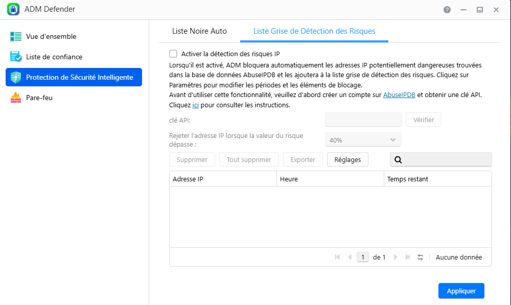 Le système de protection intelligent s'appuie sur la liste d'adresses IP fournies par AbuseIPDB pour bloquer automatiquement les adresses IP considérées comme suspectes. Cela apporte une réelle valeur ajoutée pour améliorer la sécurité de votre NAS.