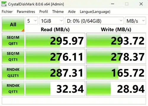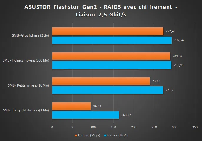 Par ailleurs, la connectivité 2.5 Gbit/s est de plus en plus présente sur les ordinateurs, donc vous devriez pouvoir, comme moi, atteindre ce niveau de performances. C'est déjà excellent puisque nous frôlons les 300 Mo/s.