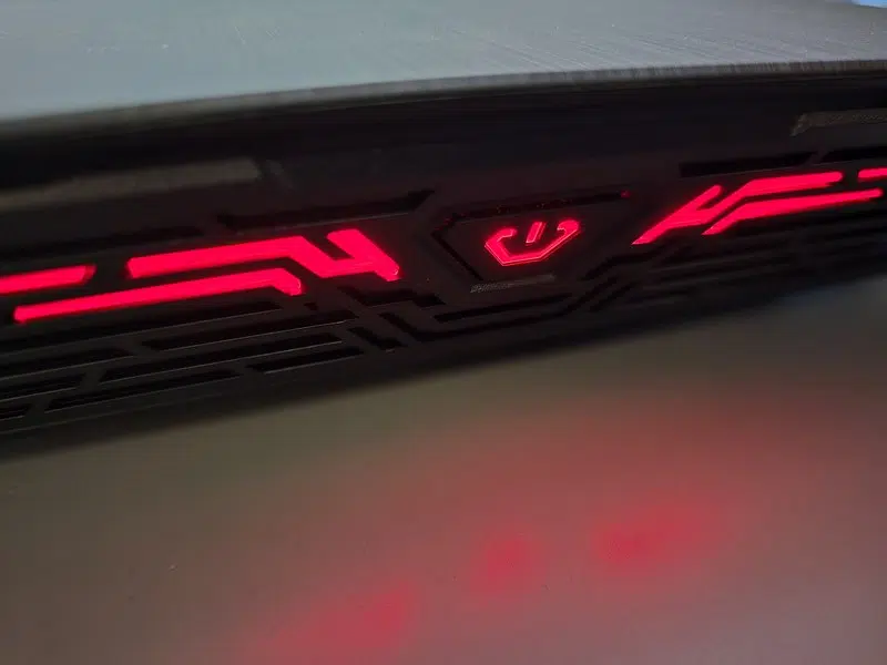 Lorsque le NAS est allumé, l'ensemble de cette façade prend vie avec un éclairage rouge, comme le montre la photo ci-dessous.