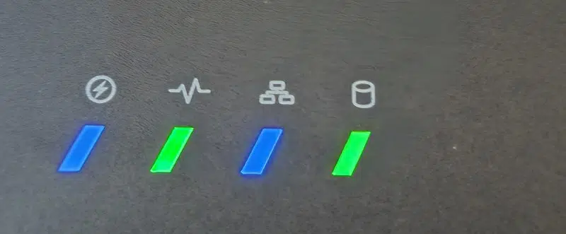 Bien entendu, lorsque le NAS est sous-tension, les LED d'état présentent sur le dessus du boitier sont allumées. Cela permet de connaître l'état global du NAS en un clin d'œil.