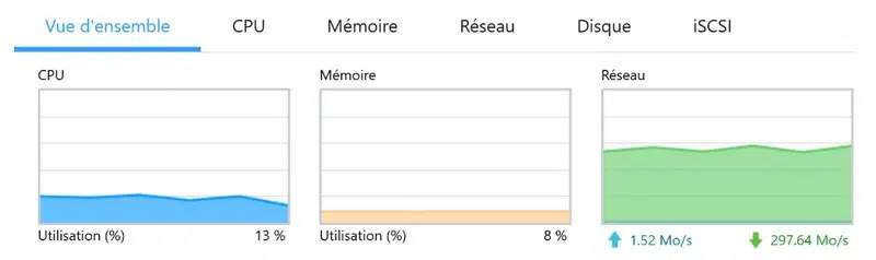Le test de débit ci-dessous a été réalisé via une connexion SMB, vers un partage non chiffré.