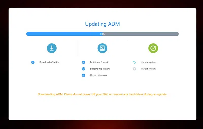 Ce NAS est livré sous ADM 5.0, la dernière génération du système d'exploitation d'ASUSTOR. La première étape consiste à mettre à jour le NAS pour bénéficier, dès le départ, de la dernière version.