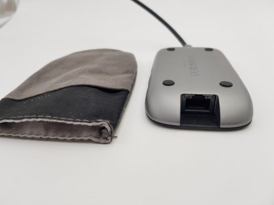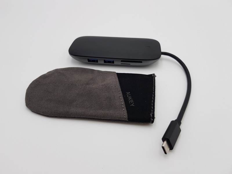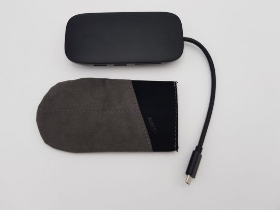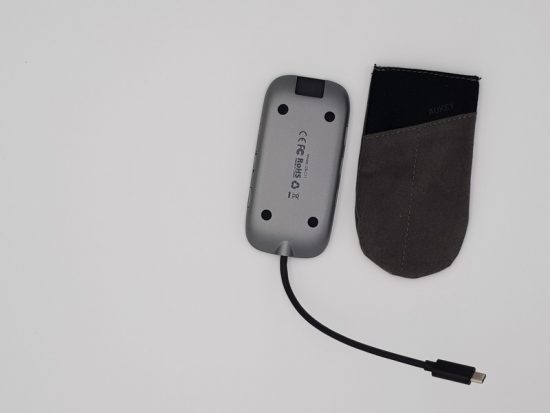 AUKEY a intégré une housse de protection en tissu qui permettra de ranger l'appareil, ainsi que le câble USB-C (non amovible). Le Hub étant amené à être baladé à droite à gauche, ce n'est pas du luxe d'avoir une pochette de rangement.